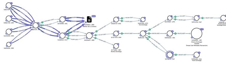 "Fast alle Transaktionen können tatsächlich verfolgt werden. Auf dem oberen Screenshot kann man ein Beispiel der IT Forensik sehen. Hierbei ist der Ansatz, dem Geldfluss zu folgen. Bis die Coins wie BTC, ETH, TRX, oder auch USDT wieder auf einer Börse landen."